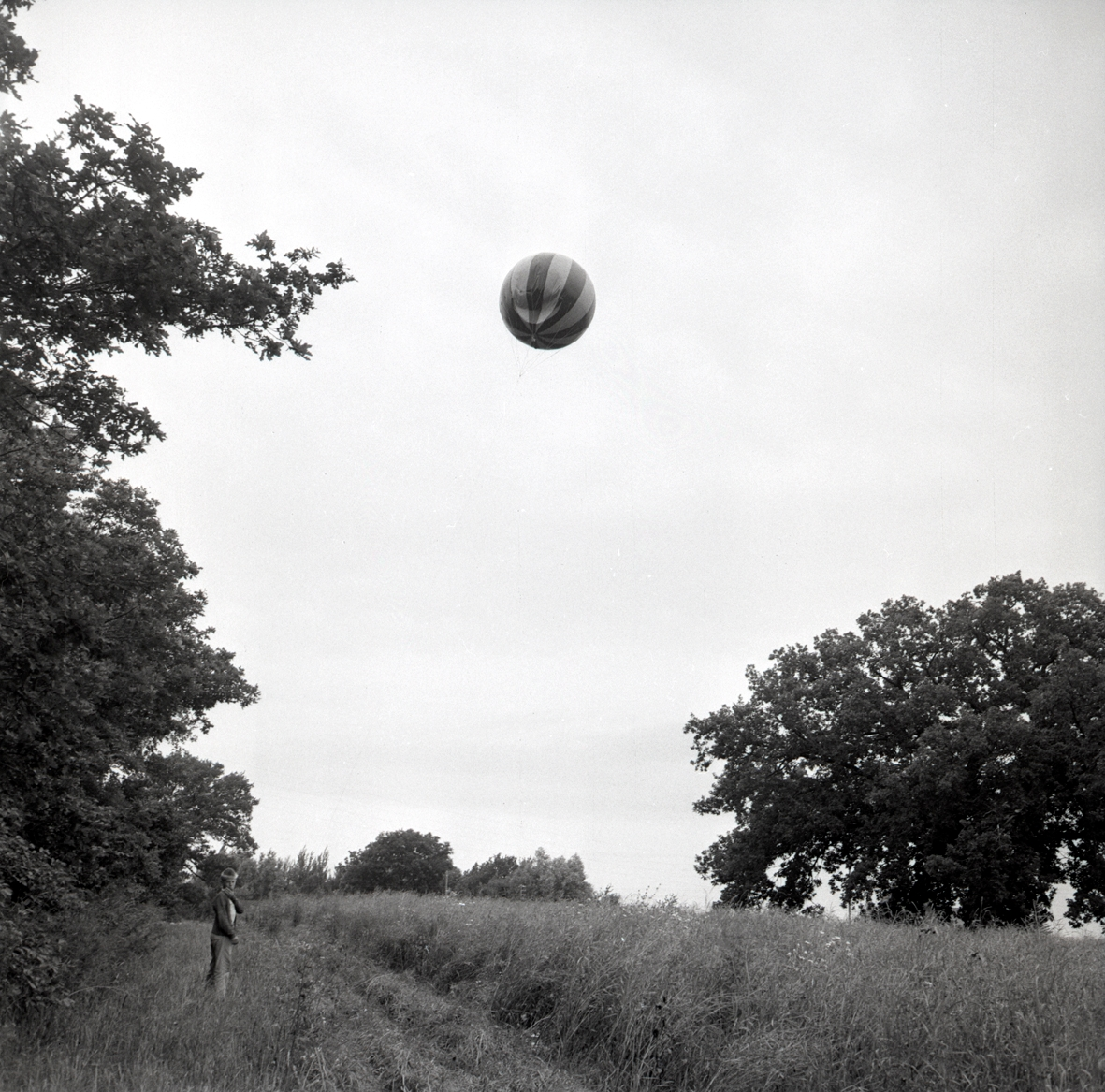 Titel: Ballong som sändes upp för att markera att ett eventuellt bygge störde omgivningen (troligen vattentornet).