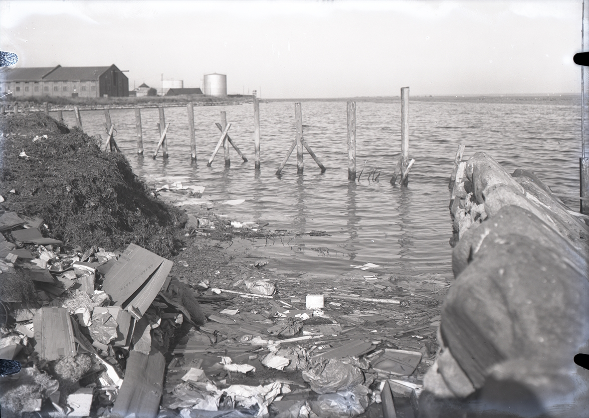 Tjärhovet. I bakgrunden syns Grimskär. Från utfyllnaden av Tjärhovet. Som fyll användes bl a de massor som muddrats upp ur Slottsfjärden i samband med utgrävningarna 1932-1934. Ur Walter Olsons negativsamling.