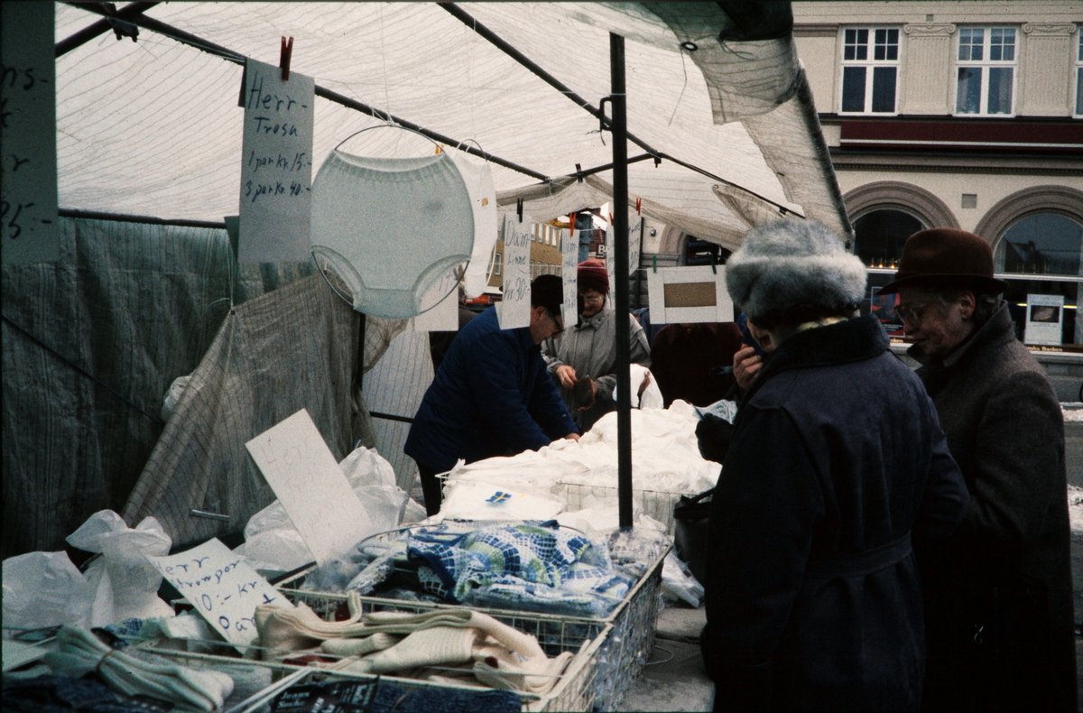 Försäljning av kläder på Stortorget i Växjö, 1970-tal.