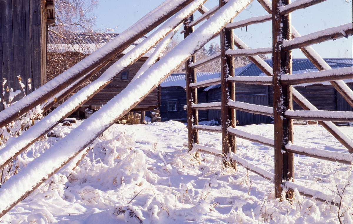 Detaljbild av den första rekonstruerade storhässjan på Ersk-Matsgården, Lindsjön, Hassela.