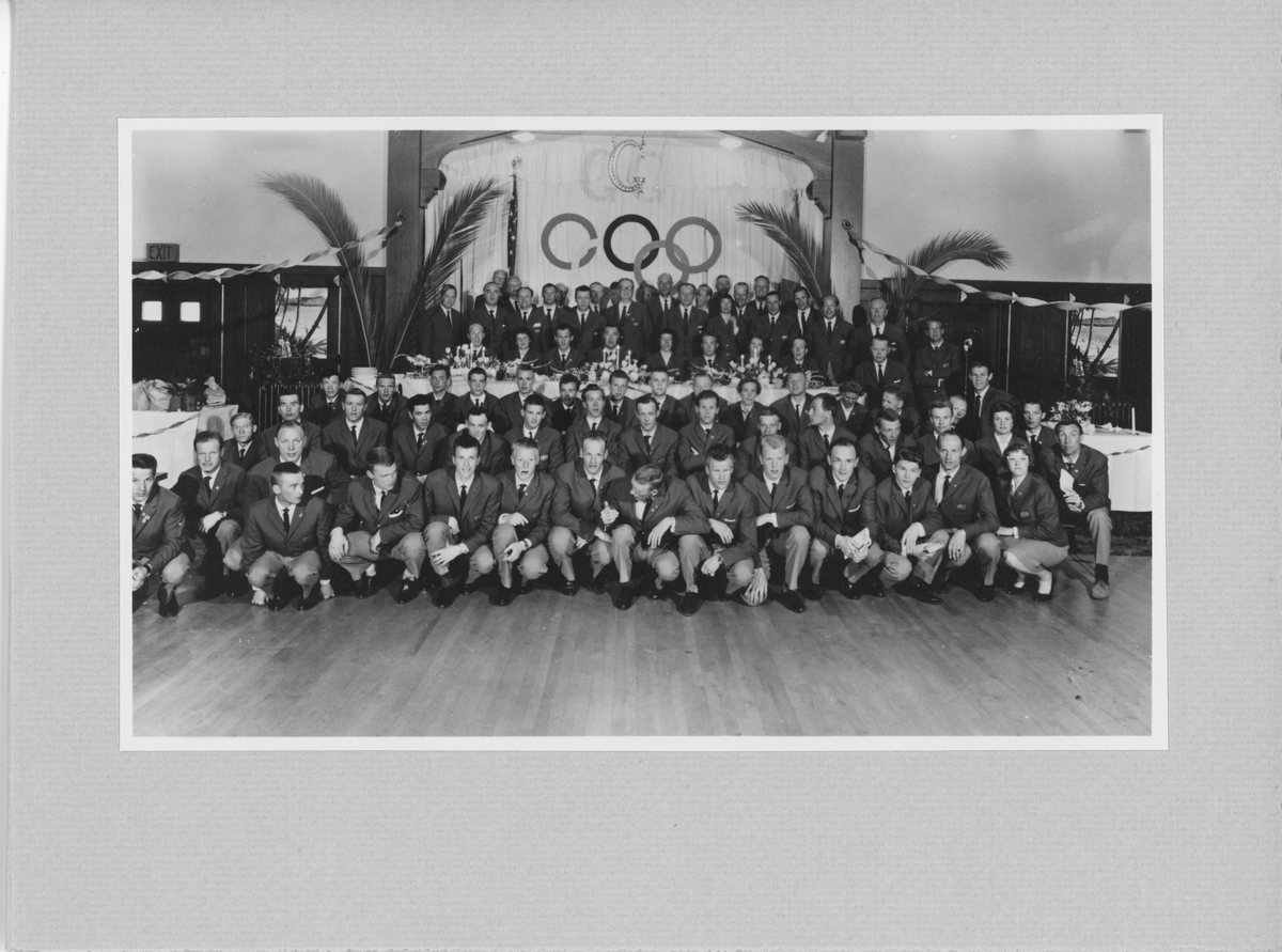 Fotomapp, Bild på olympiska truppen samt tackbrev för Läkerols medverkan. 1960.