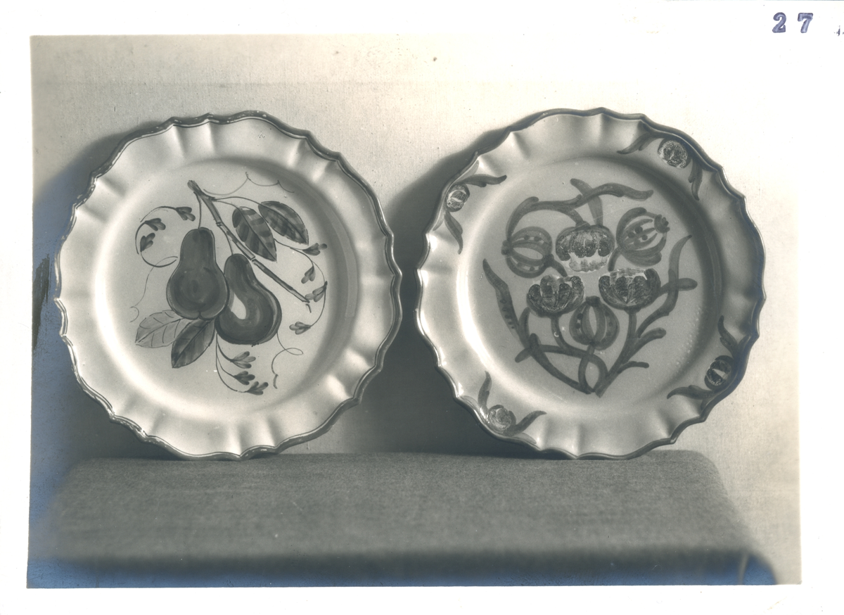 Två stora uppläggningsfat från Bo Fajans, formgivare Allan Ebeling tidigt 1900-tal.