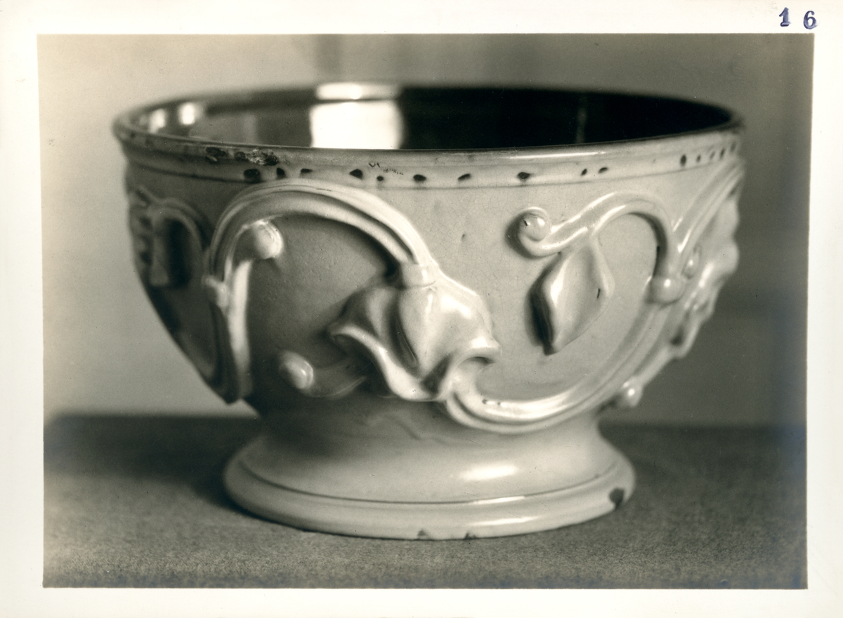 Stor skål från Bo Fajans, modellerad efter Allan Ebeling tidigt 1900-tal. Antikglasyr och gröntonad.