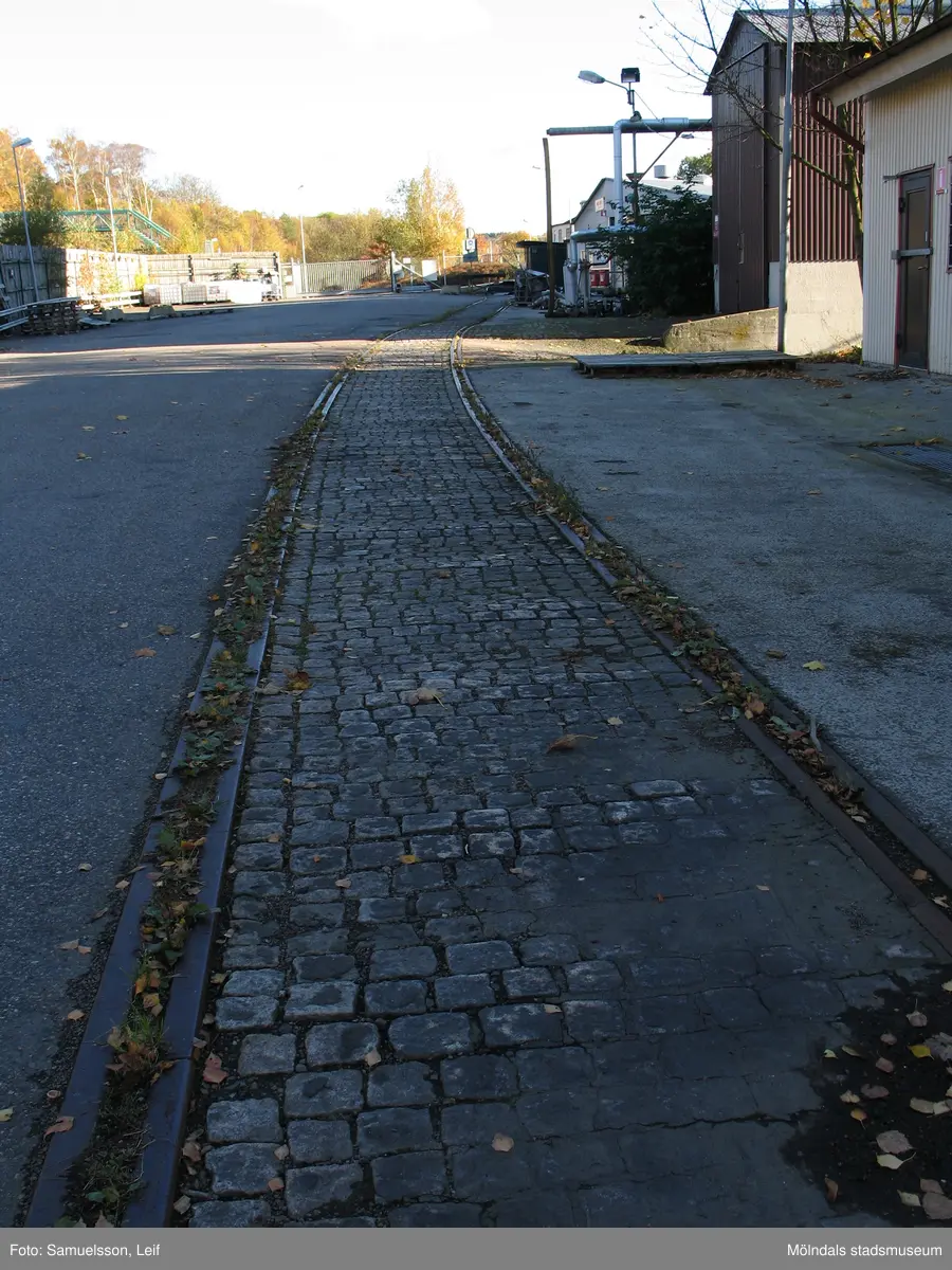 Järnvägsspår vid Soabs industrianläggning i Mölndals Kvarnby, år 2007. Industribyggnader ses till höger om spåren. Anläggningen användes vid fototillfället av Hexion Speciality Chemicals Sweden AB.