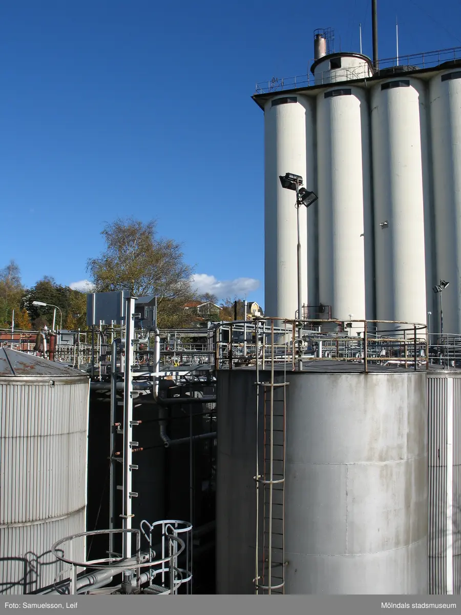 Titel: Tankar vid Soabs industrianläggning i Mölndals Kvarnby, år 2007. I bakgrunden silobyggnaden. Anläggningen användes vid fototillfället av Hexion Speciality Chemicals Sweden AB.