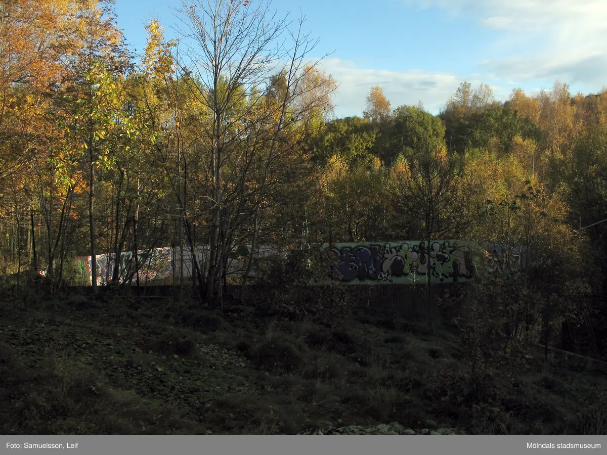 Titel: En betongkonstruktion, invändigt täckt med graffiti, vid Soabs industrianläggning i Mölndals Kvarnby, år 2007. Anläggningen användes vid fototillfället av Hexion Speciality Chemicals Sweden AB.