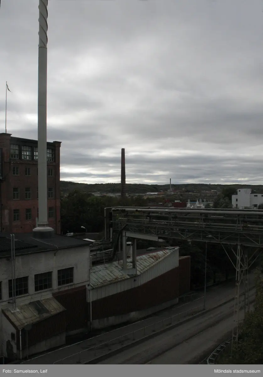 Vy över "Kråkan", Kvarnbygatan, mot byggnad vid Soabs industrianläggning i Mölndals Kvarnby, år 2007. Anläggningen användes vid fototillfället av Hexion Speciality Chemicals Sweden AB.