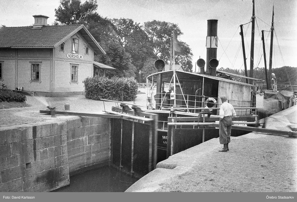 Slussning i Norsholm vid Norrköping, 1930-tal