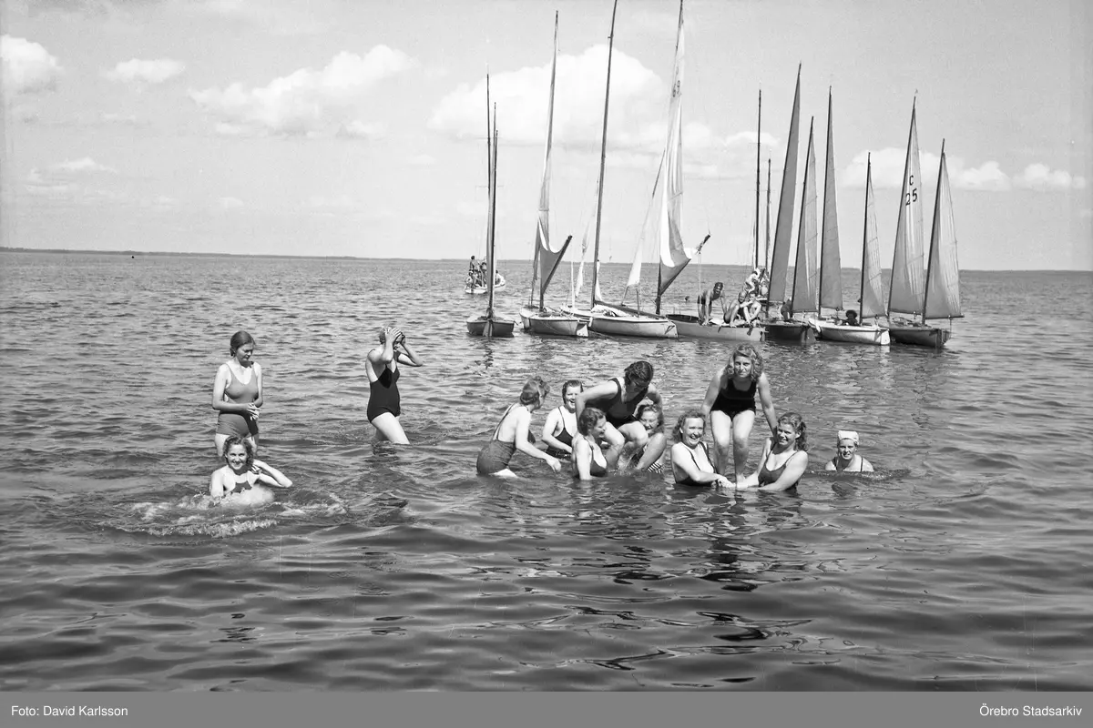 Badare och segelbåtar vid Hjälmarbaden, 1944