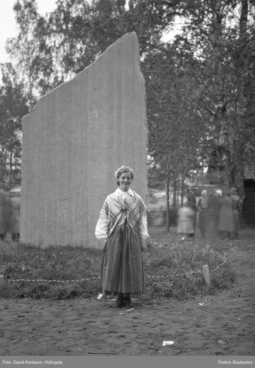 Flicka i folkdräkt vid sommarfest på forngården, 1930