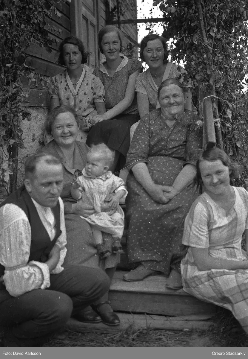Gruppfoto på trappan vid Karlstorp, 1940-tal