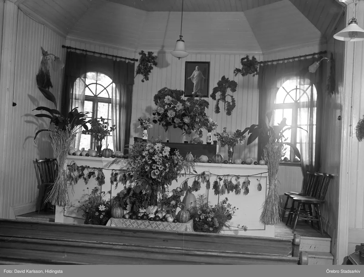 Dekoration till skördefest i Fridhems missionshus, 1929