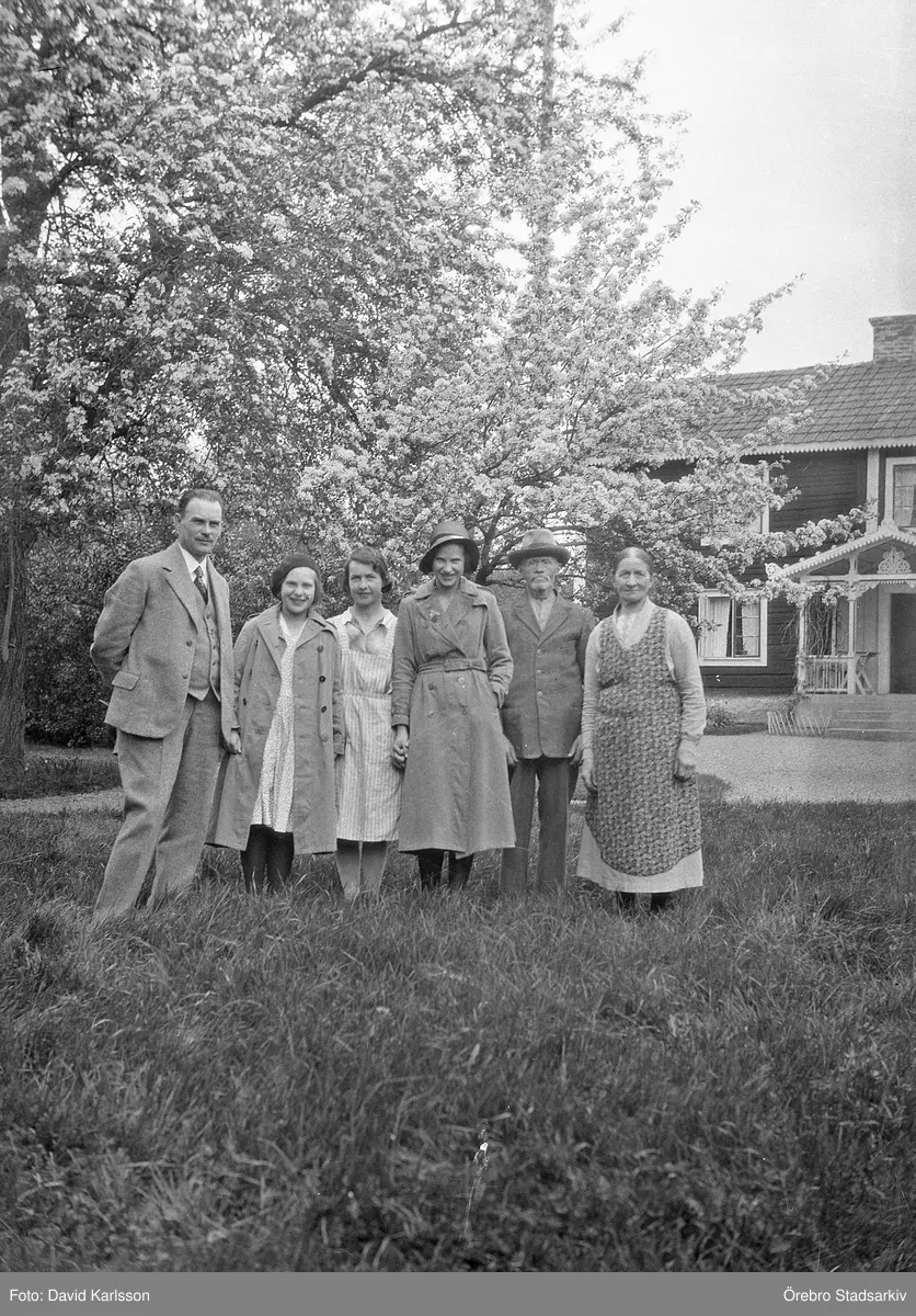 Gruppfoto i trädgården i Karlstorp, 1940-tal