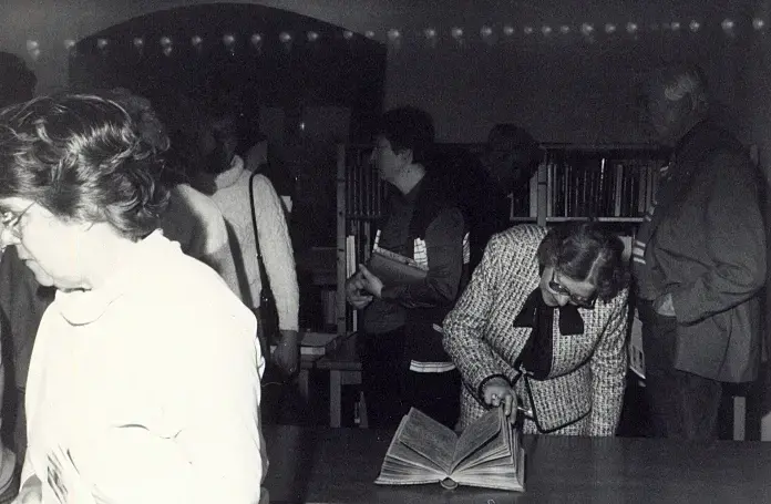 Hembygdsförbundets studiebesök på Landsarkivet i Uppsala i april 1985.