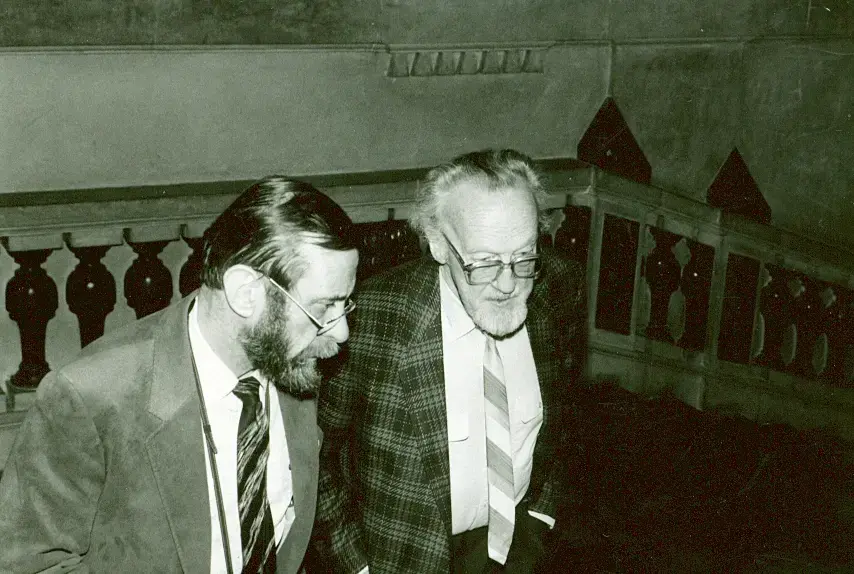 Ordinarie styrelseledamoten Sture Wärlinder och ordf. i Vätö hembygdsförening Tore Ericsson vid årsmötet 1988.