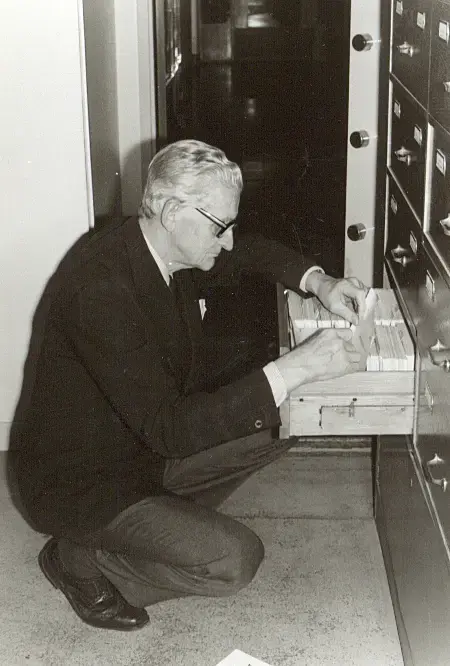 Hembygdsförbundets studiebesök på Nordiska museets folkminnesamling 1980-11-27.