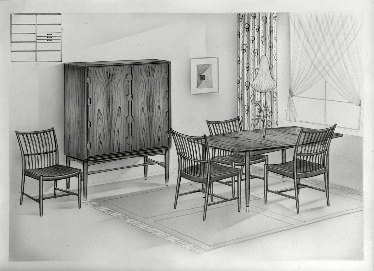 Tecknad bild av teakmöbel