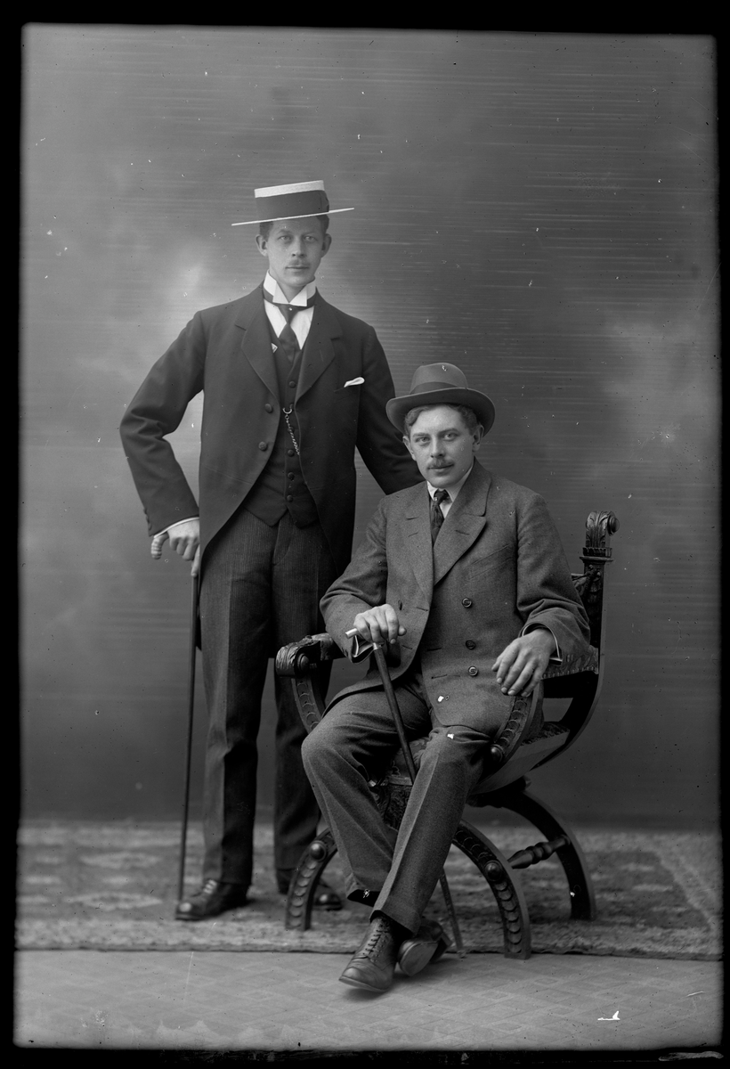 Två män med käpp och hatt