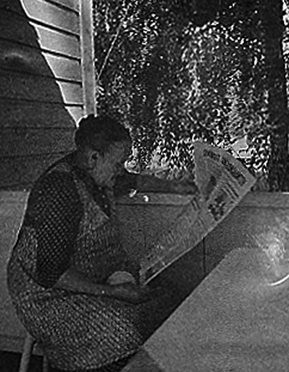 En äldre kvinna som läser Västmanlands Läns Tidning.