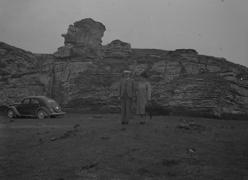 Två personer framför en rauk.