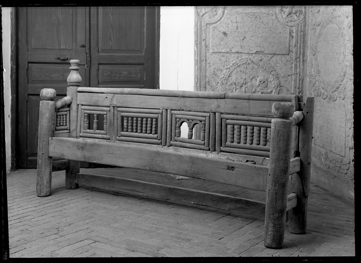 Kyrkbänk, medeltida, framifrån.