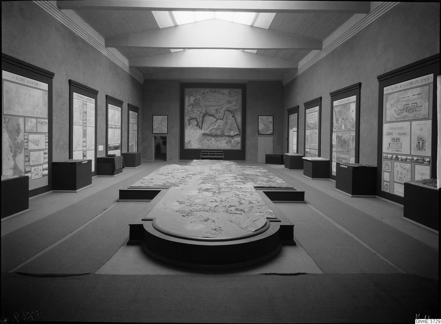Jubileumsutställningen 1923. Kommunala avdelningen. Göteborg i äldre och nyare tid, kartor, detalj av stadsmodell.