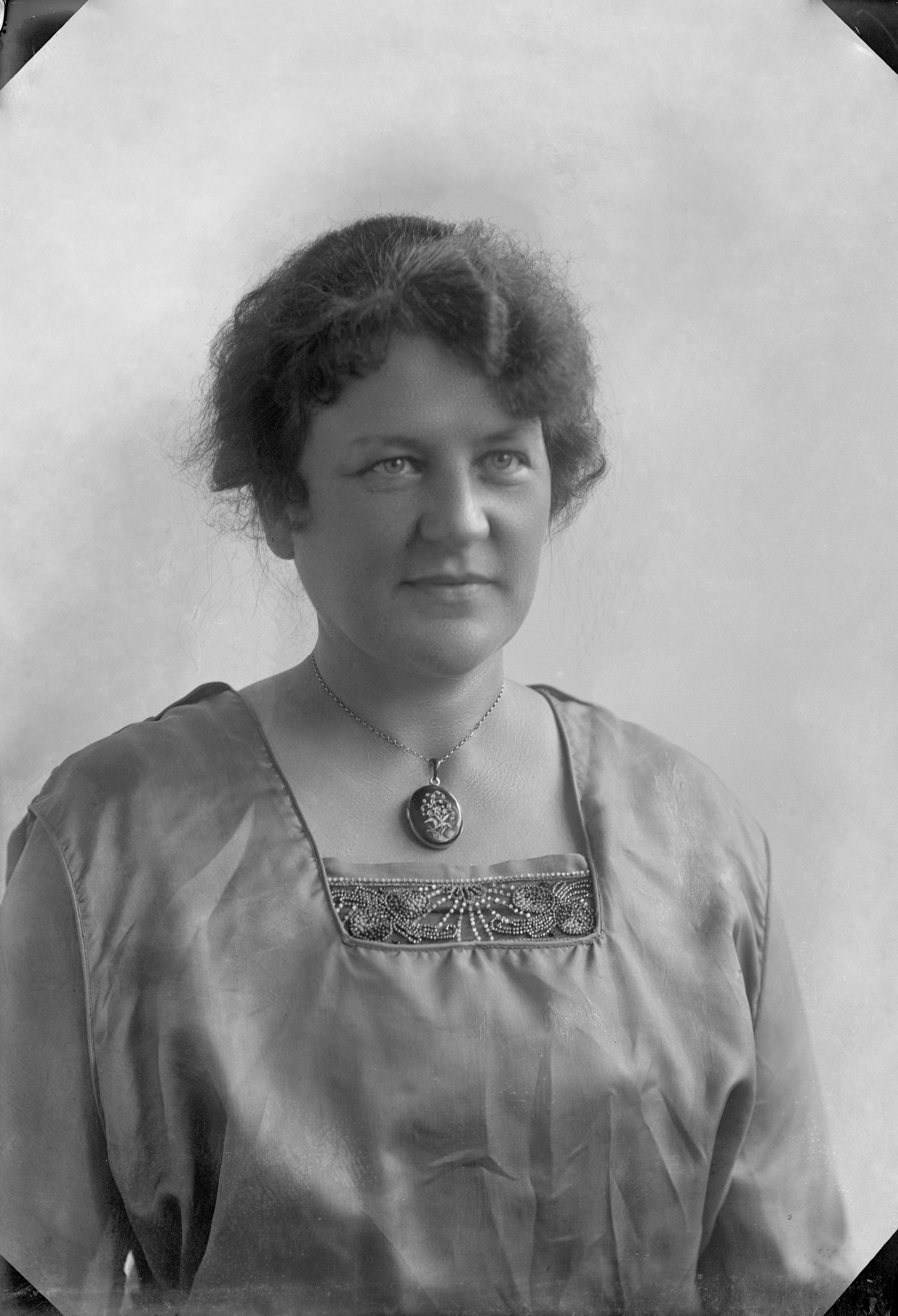 Beskrivning: Porträtt i halvfigur av Signe Wetterlundh.