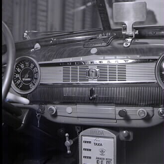 Instrumentbrädan på en taxibil av bilmärket Chevrolet. Beställare Yngve Hansson.