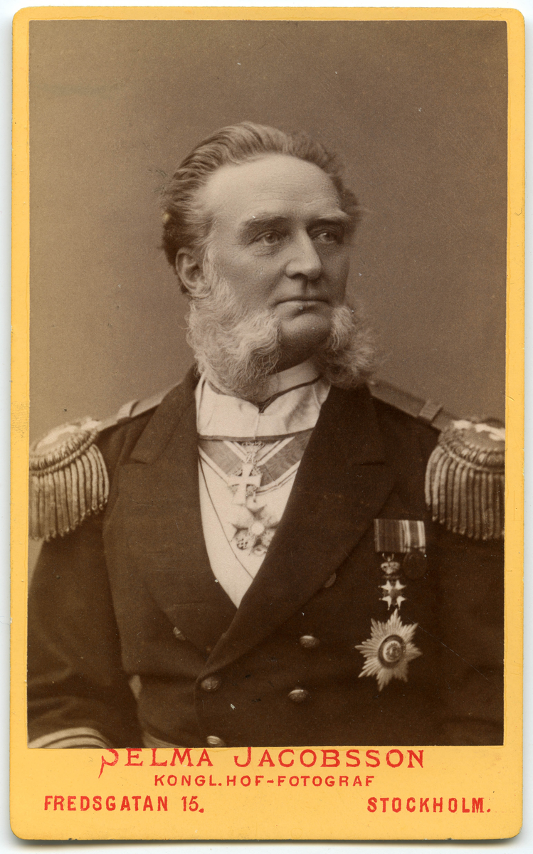 Titel: Porträtt på Ludvig Gustaf Sigfrid Pantzerhielm. Född 13 november år 1819 i Klinte på Gotland och död 9 augusti år 1905 i Stockholm.