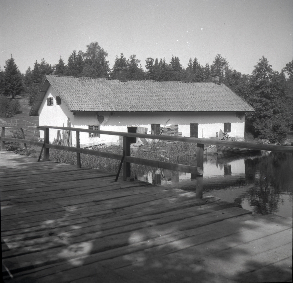 Bränneriet vid ett vattendrag och en brygga i Helgerum.