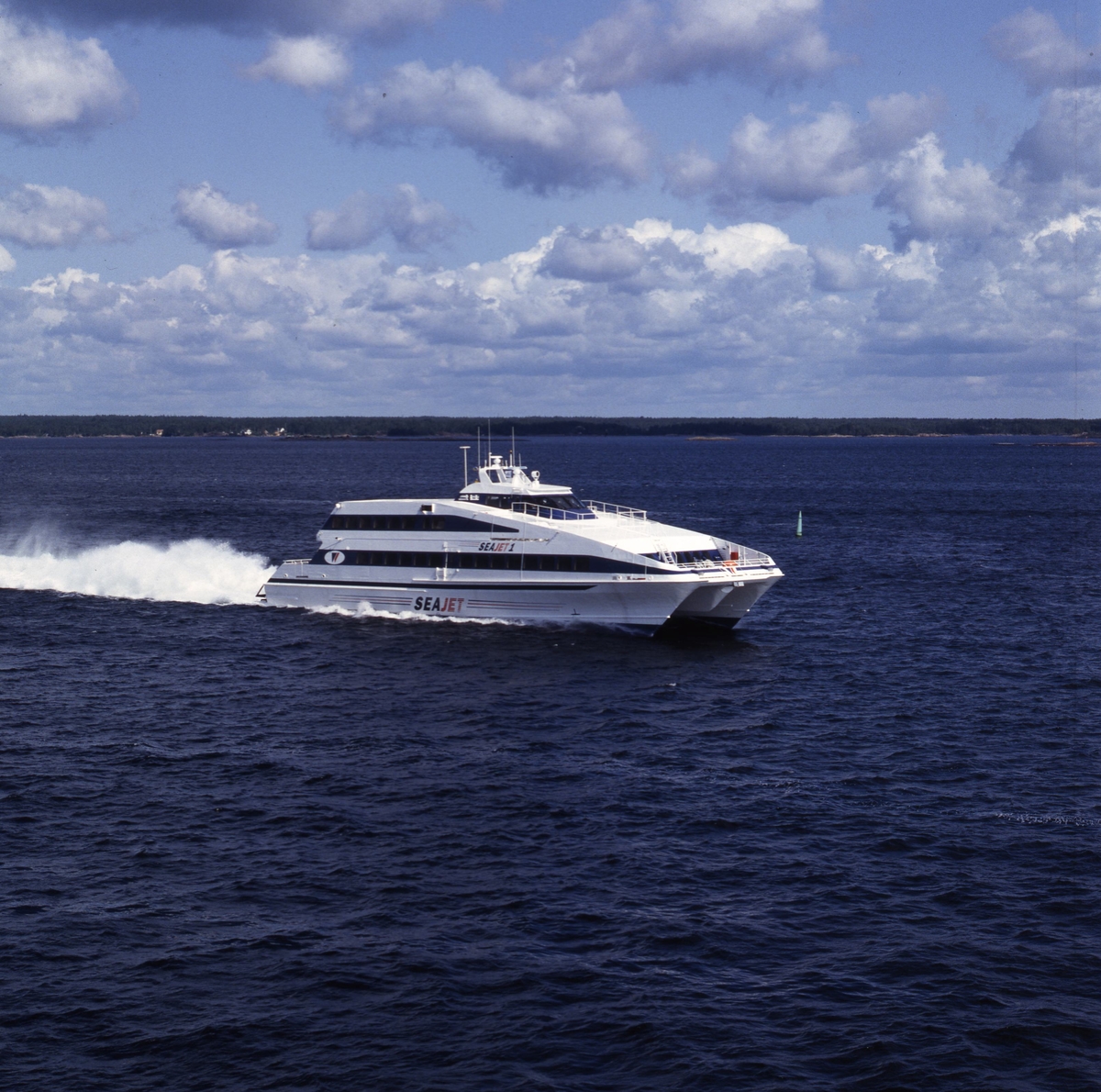 Vattenjetdriven katamaranfärja, 40 knop.