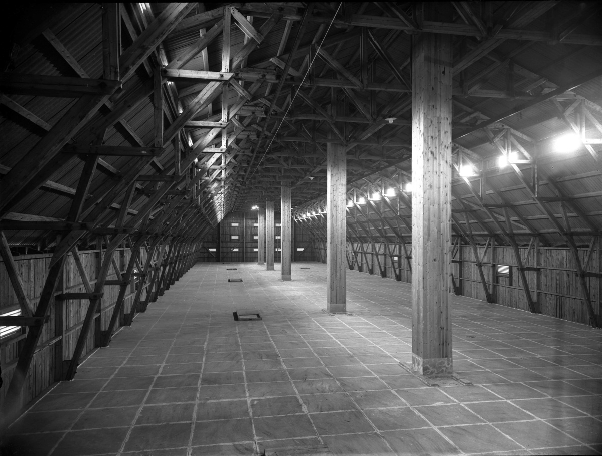 Interiören av en ekonomibyggnad. Enligt Walter Olsons journal är bilden beställd av Skandinaviska Eternitbolaget ifrån Norr Mälarstrand 22 i Stockholm.
