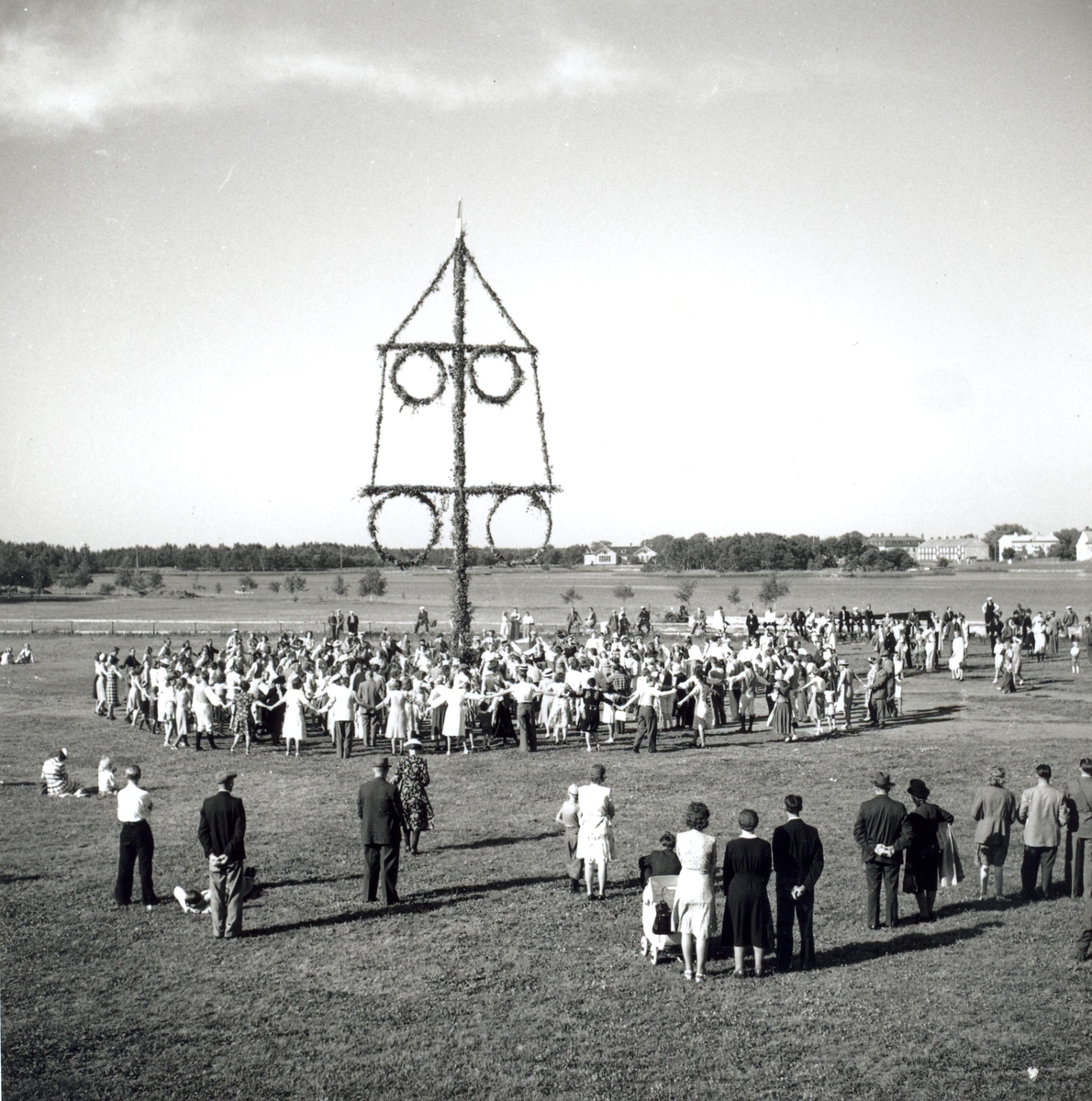 Dans runt midsommarstången under hantverksmässan i Kalmar 1947.