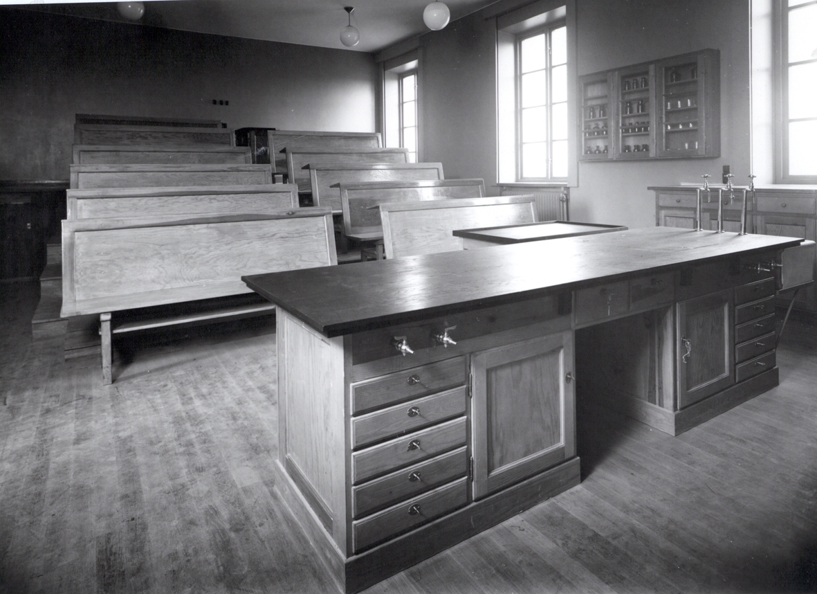 Interiör från en skolsal i Kalmar högre allmänna läroverk, nuvarande Stagneliusskolan.