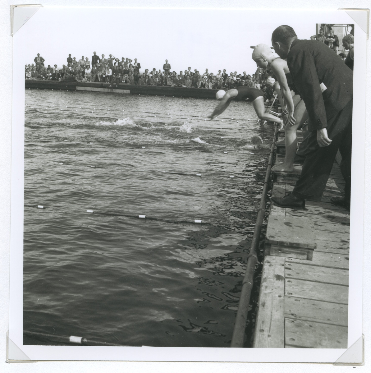 Startskottet har gått vid SM i simning, som 1946 hölls vid Långviksbadet i Kalmar.