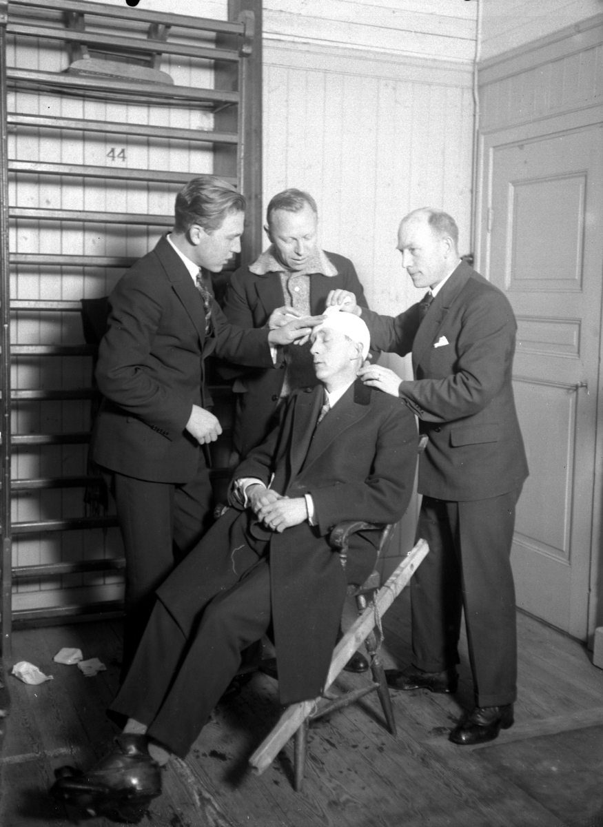 Röda Korsets Kalmarkrets genomför sjukvårdsutbildning i en gymnastiksal.