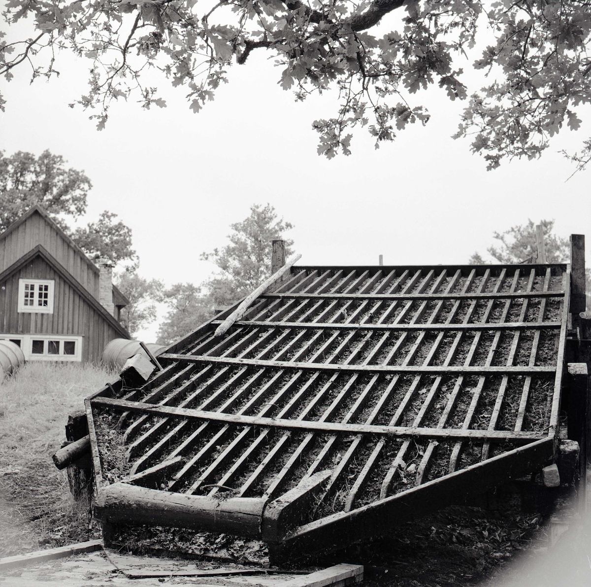 Hos Birger Broström. Sjöbod med "tjärflak" = bark.
