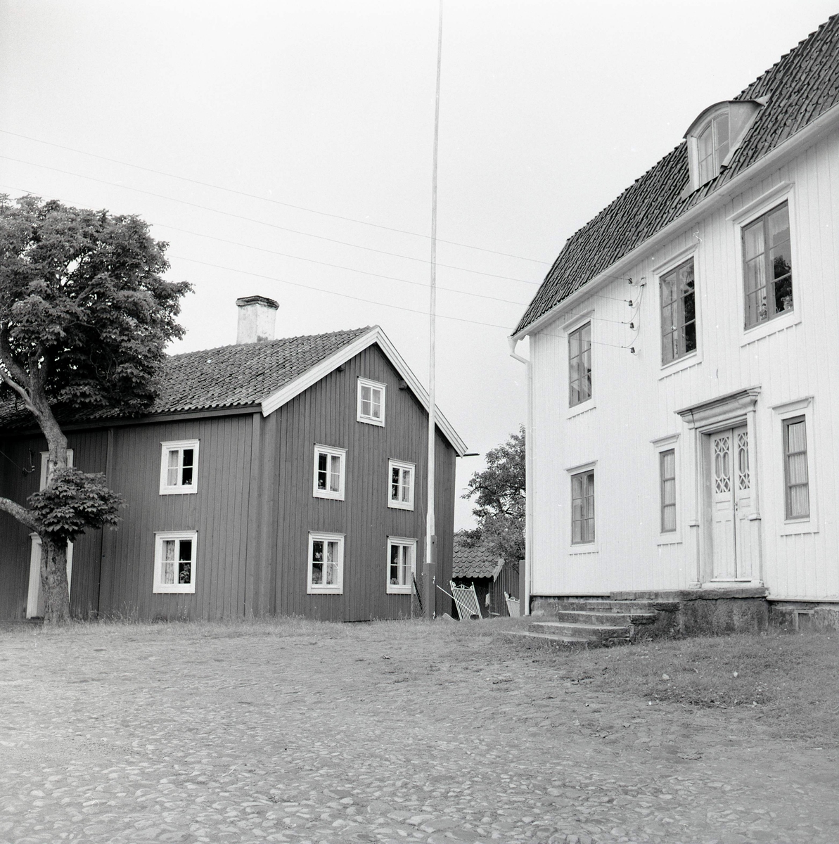 Längst till vänster det äldsta huset i köpingen, kallat Slottet. Numera tillhör det baron Rappe på Strömsrum.