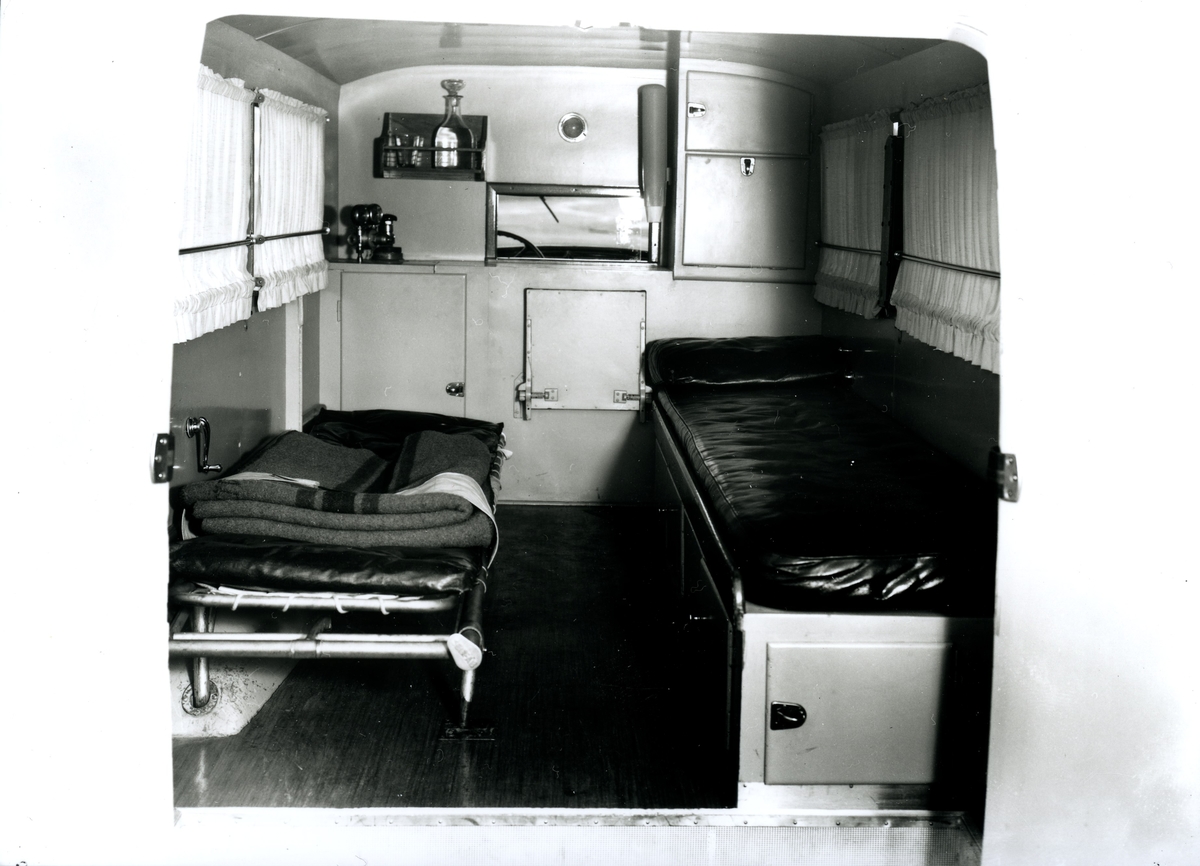 Brandkåren i Kalmar, ambulans med bår och inredning.