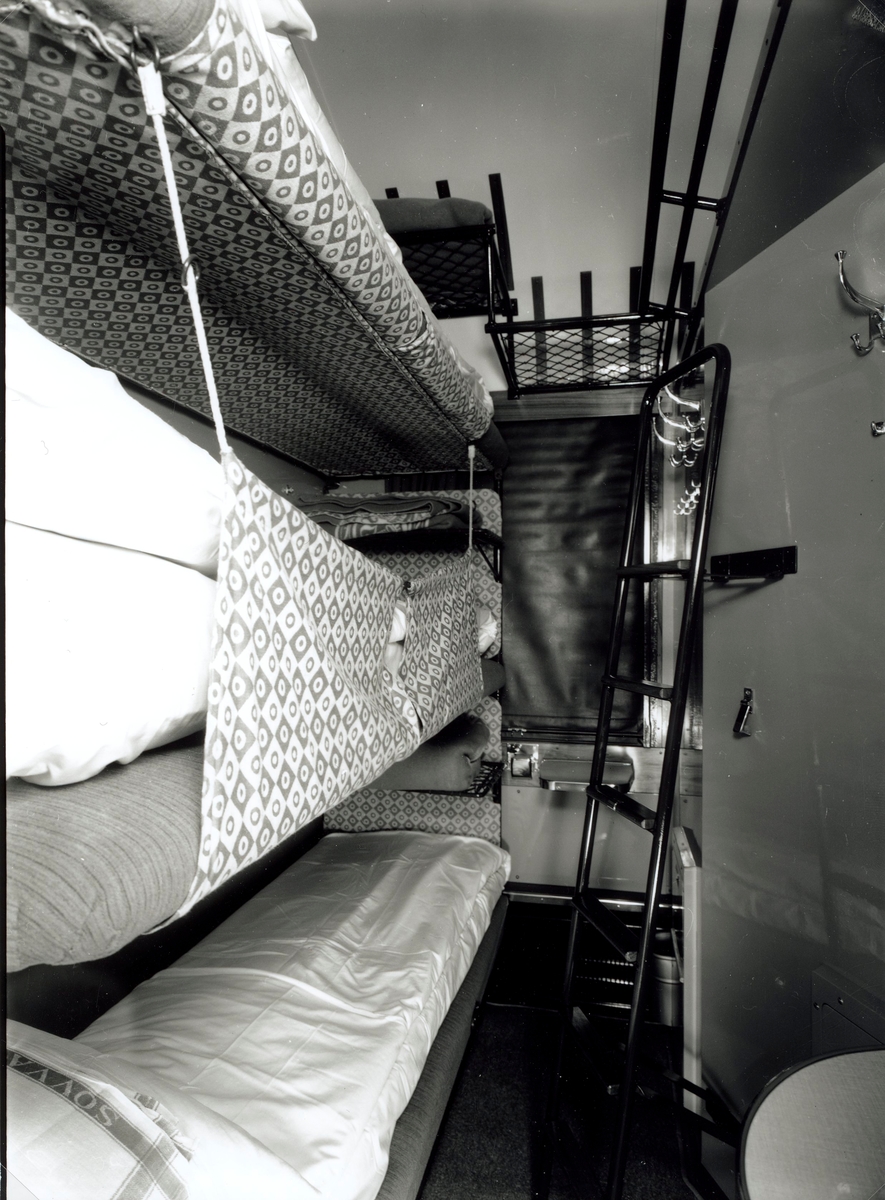 Sovkupé med trevåningssäng. Från Kalmar Verkstads AB.