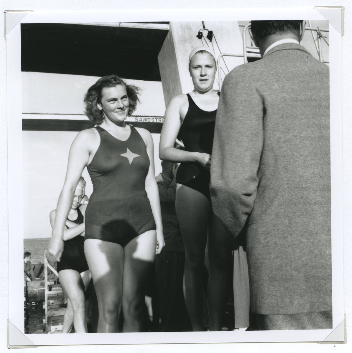 Prins Gustaf Adolf delar ut priser under SM i simning, som 1946 hölls vid Långviksbadet i Kalmar.