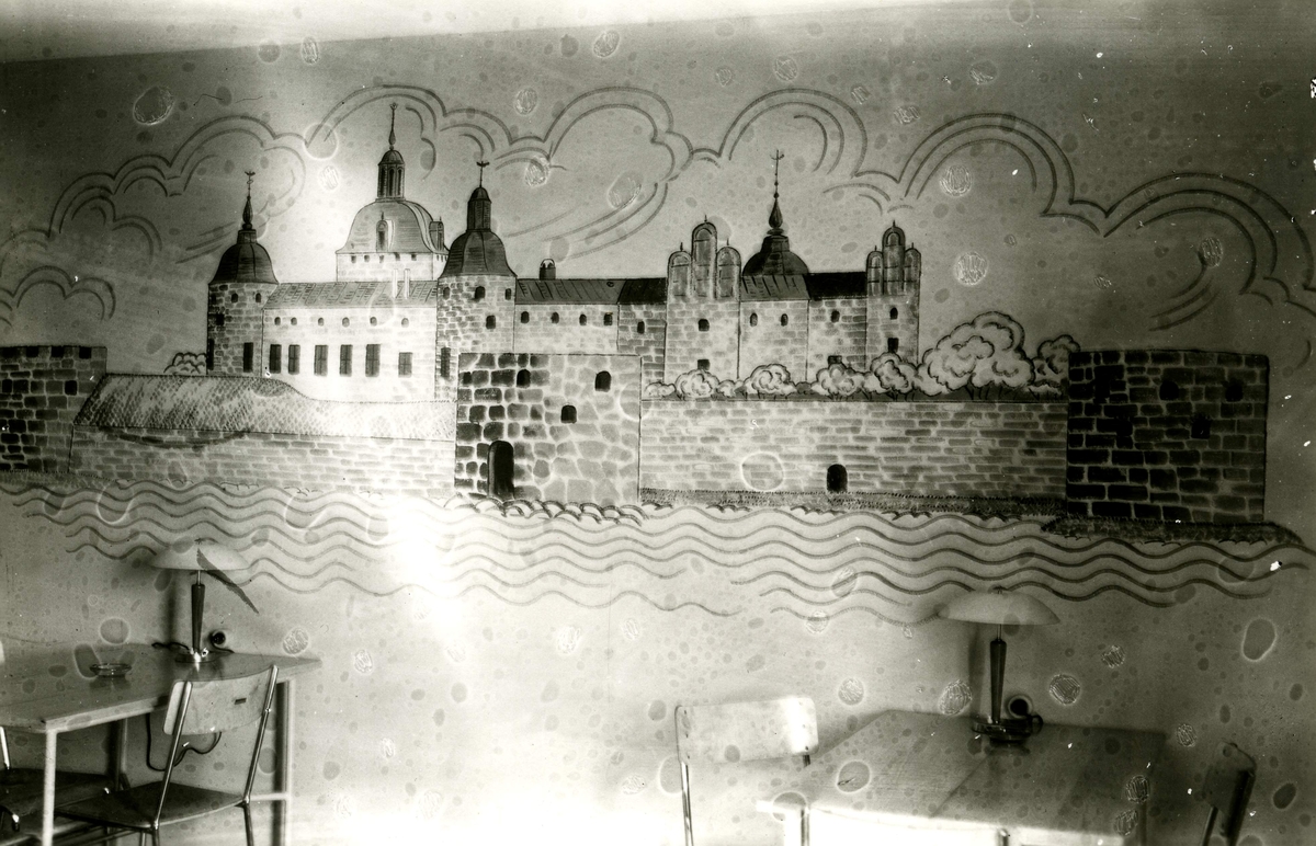 Interiör från Stadshotellets matsal. På väggen en målning av Eric Bojs.