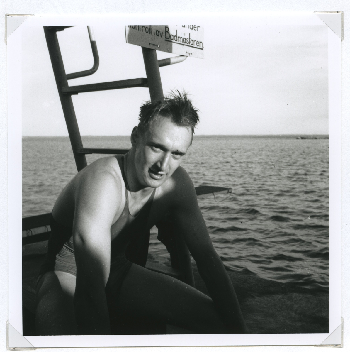 Per Olof Olsson, deltagare vid SM i simning, som 1946 hölls vid Långviksbadet i Kalmar.