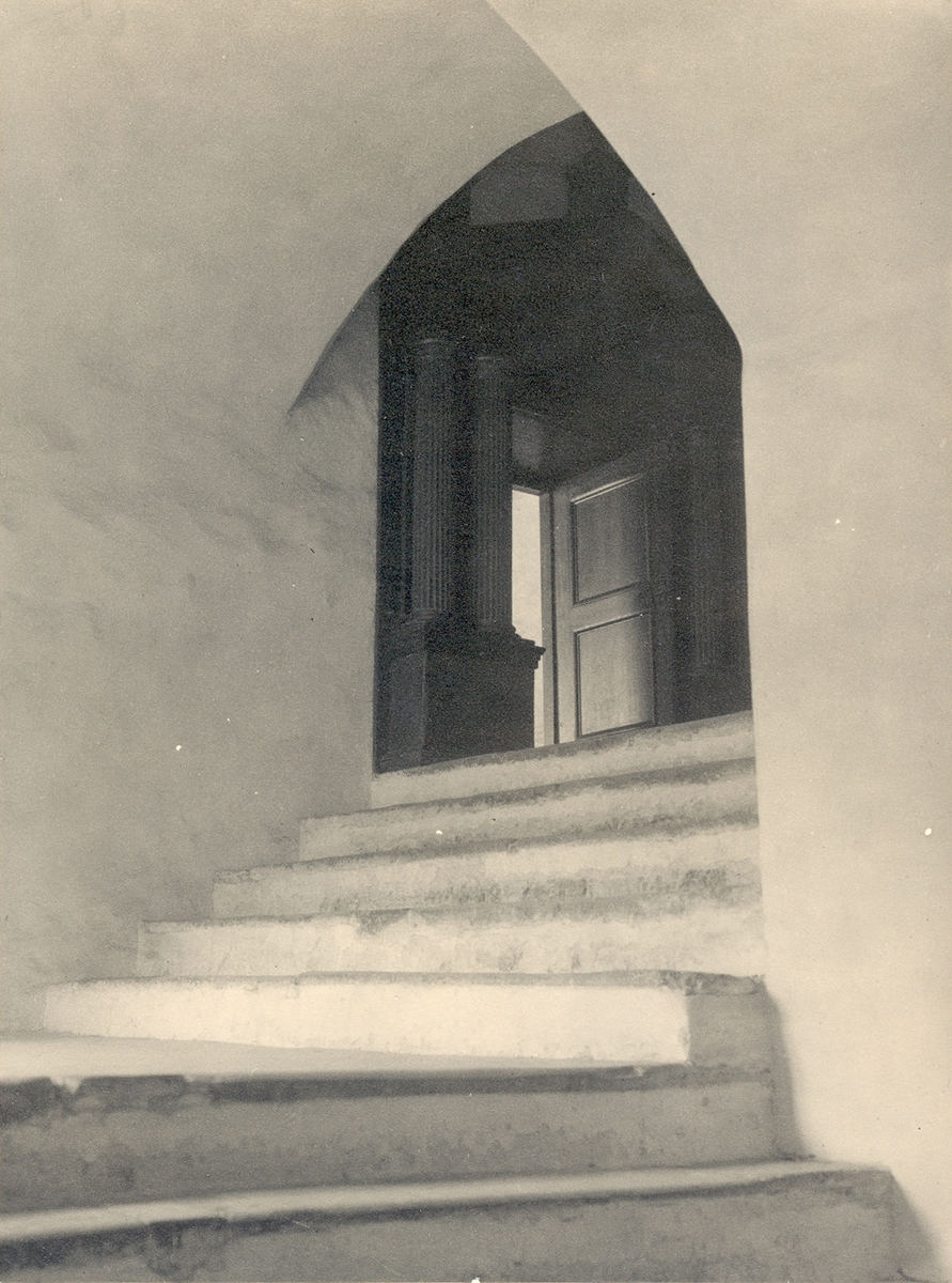 Trappan bakom altaret i Slottskyrkan, ner till entresolen på Kalmar slott.