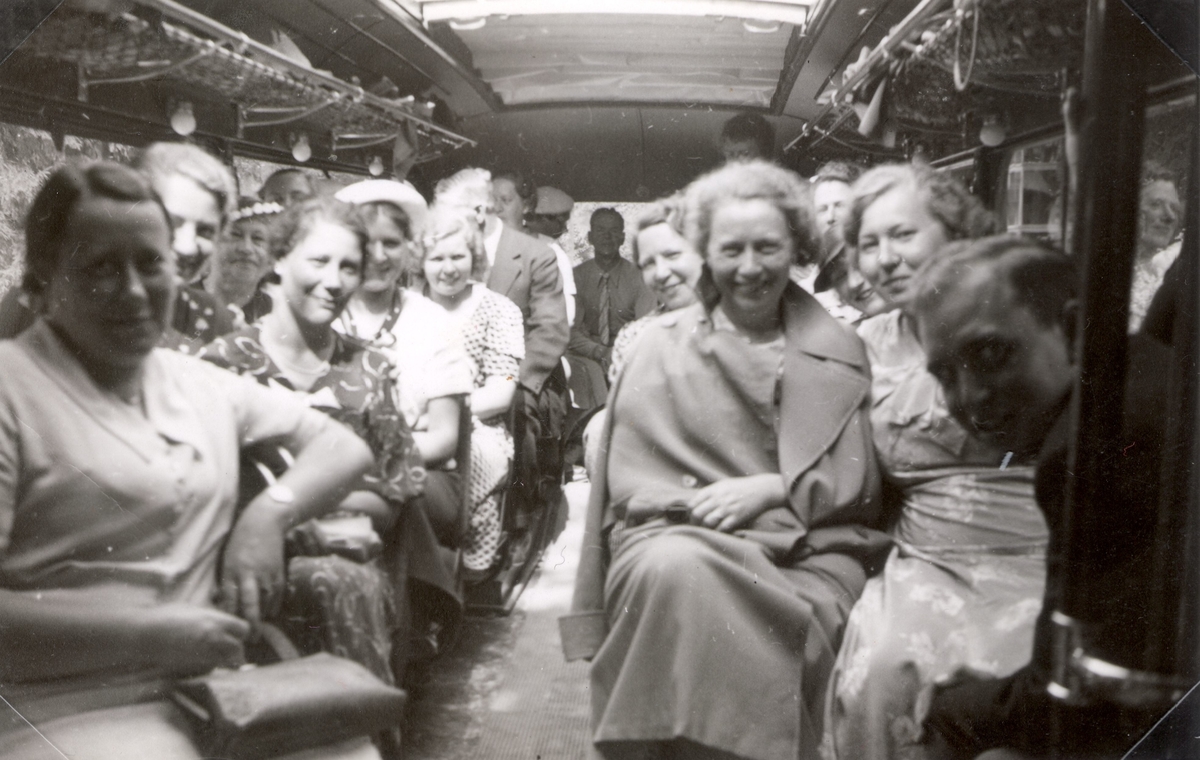 Amatörfoto taget inuti en fullsatt buss möjligen med Ellen Warholm i blickfånget.