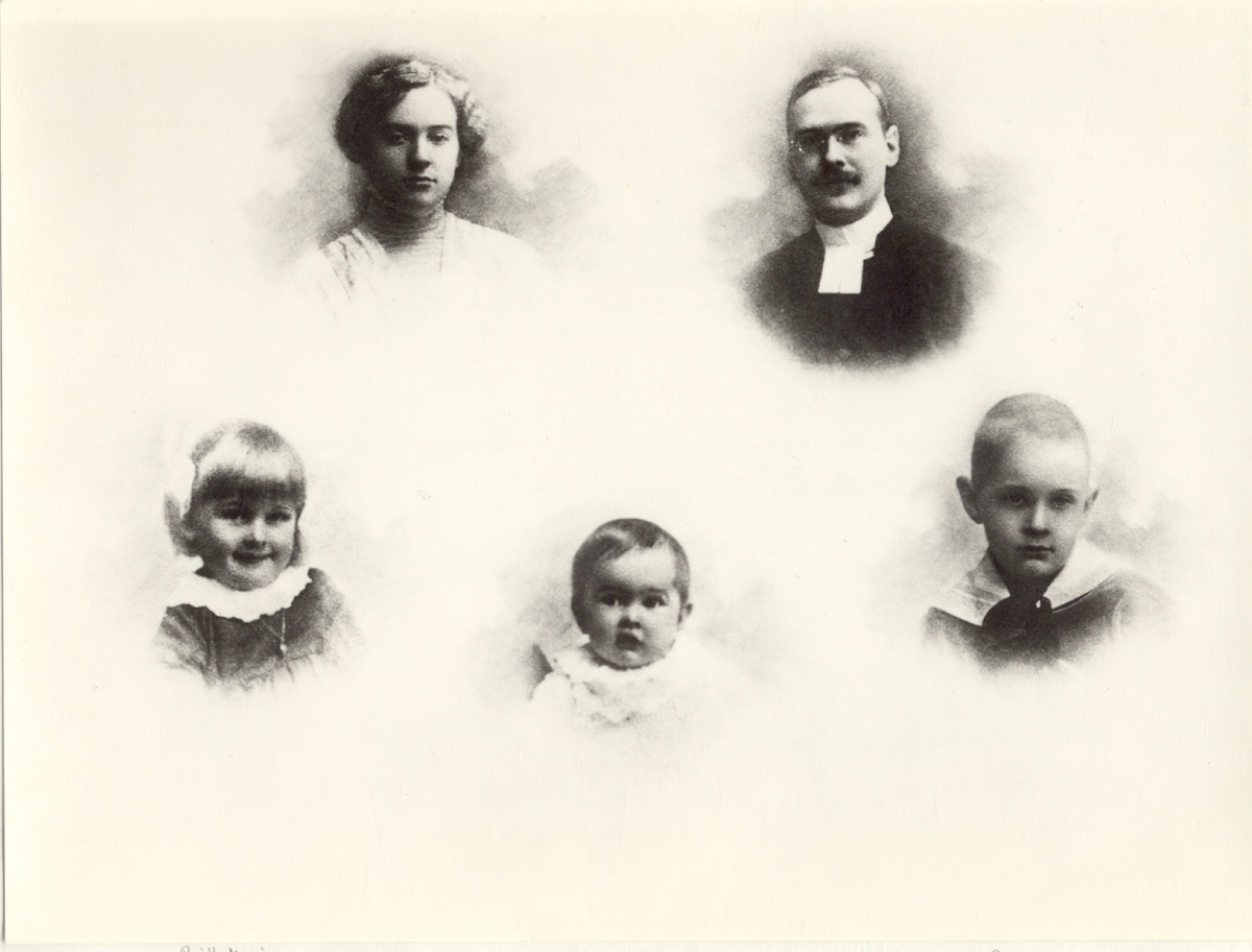 Från vänster överst: Edit Lundgren, född Elfversson, dotter till Bertha Jeansson. Hjalmar Lundgren. Från vänster under: Britt-Marie Lundgren, Margit Lundgren, Arne Lundgren.