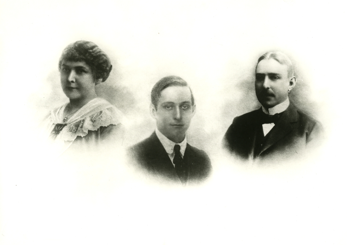 Ett utav grosshandlare Johan Julius och Emma Jeanssons 13 barn. Gustaf Jeansson, gift med Elin Cederblad. född 27/2 1877. Han var född 11/9 1871, död 1946. Han var barn nummer 9. Sonen Yngve Jeansson, född 2/8 1897. Från vänster: Elin Jeansson, född Cederblad, Yngve Jeansson, gift med Hagar Svensson, Gustaf Jeansson, ägde Berga säteri.