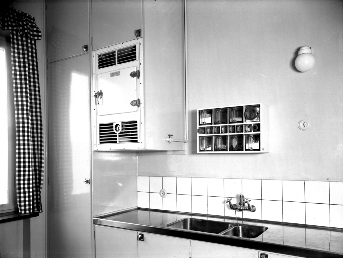Bild på köksinredning. Enligt Walter Olsons journal är bilden beställd av Elektrolux ifrån Stockholm.