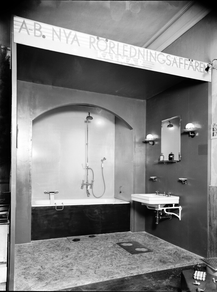 Utställning om badrumsinredning via "A-B Nya rörledningsaffär".