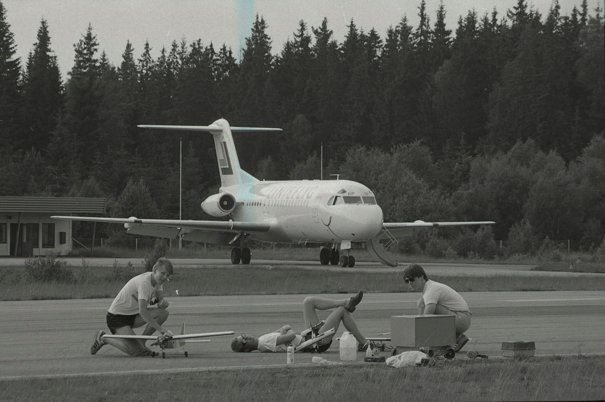 Titel: Fokker F28 på Skuteryds ( Emmaboda ) flygplats istället för i Ronneby, landar i Kalmar för att tanka på väg till Arlanda.